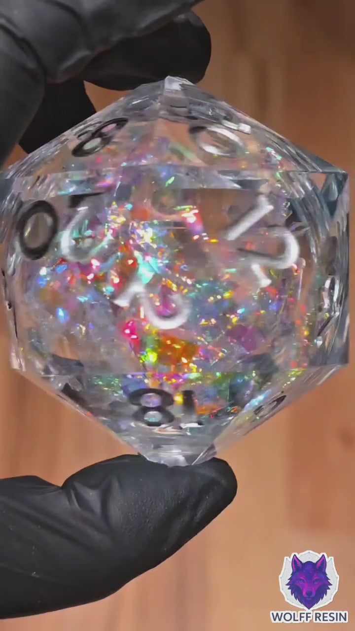 Legendärer Polyedrischer D20 55mm – Liquid Core Opal Artefakt Würfel | Handgemachter XL Resinwürfel | DnD Dice Pen and Paper TTRPG Fantasy Würfel