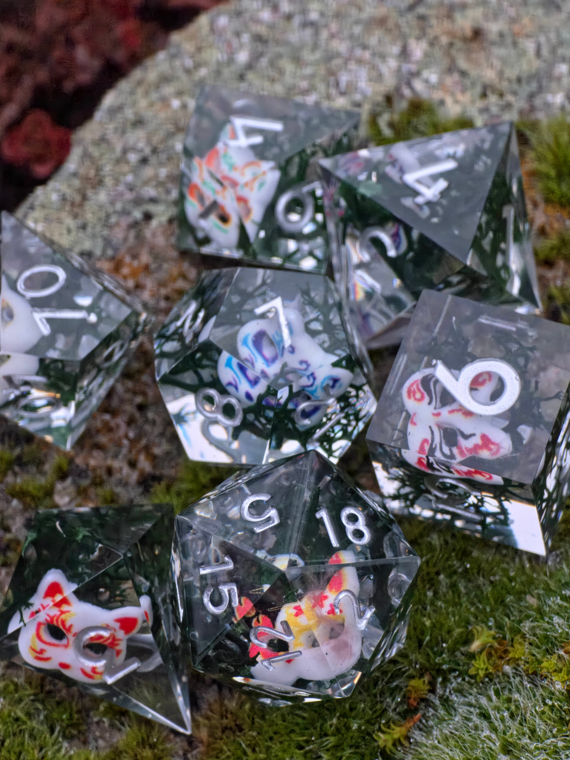 Oni Curse Dice ist ein düsteres, mystisches polyedrisches Würfelset, inspiriert von japanischer Folklore und den gefürchteten Oni – Dämonen, die zwischen den Welten wandern und Sterbliche mit Macht, Wahnsinn oder Schicksal belohnen.