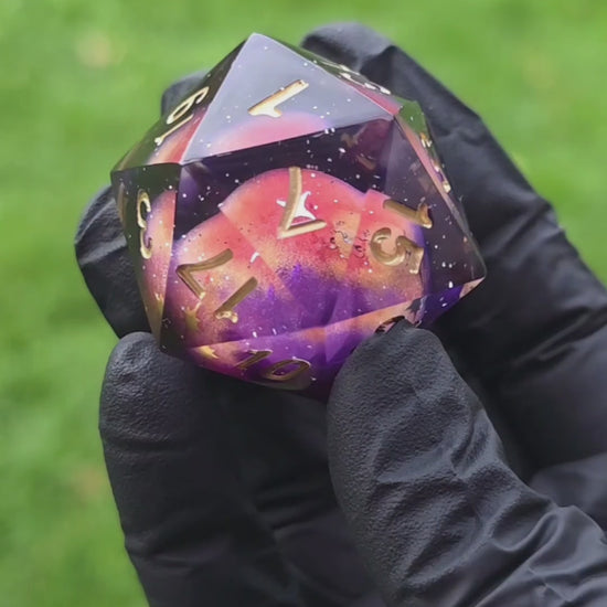 Dieser handgegossene D20 trägt das Herz einer leuchtenden Miniatur-Planete in sich,