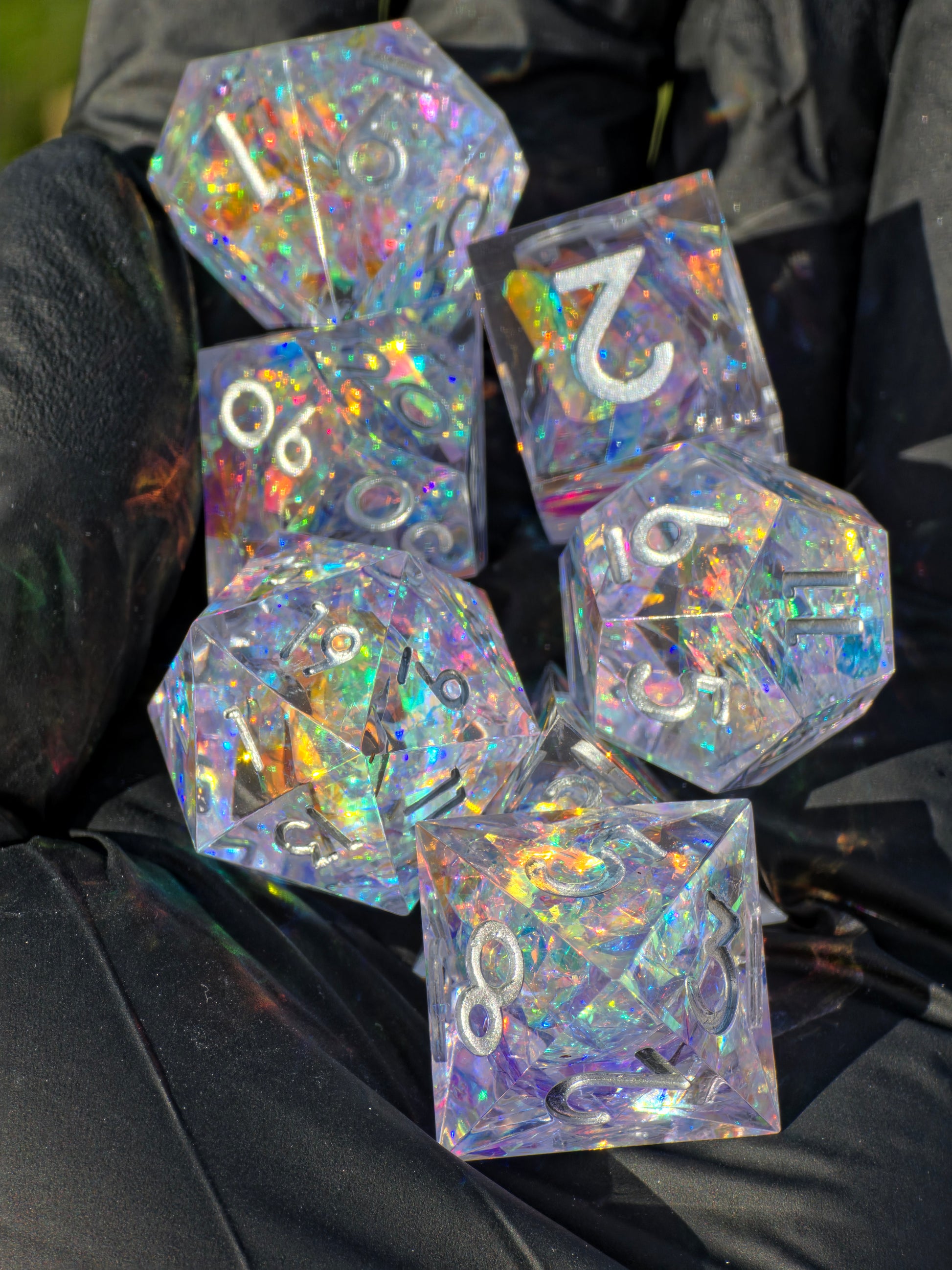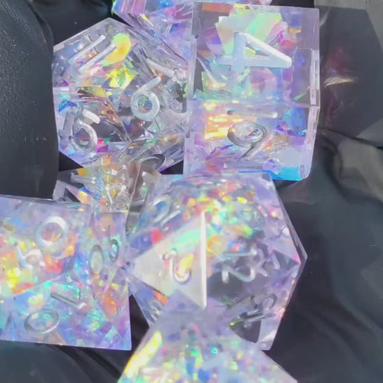Polyedrischer Würfelset Opal Aurora – Handgemachte Resinwürfel mit Opal Effekt | DnD Dice Set Pen and Paper TTRPG | Gefrorenes Nordlicht Würfelset