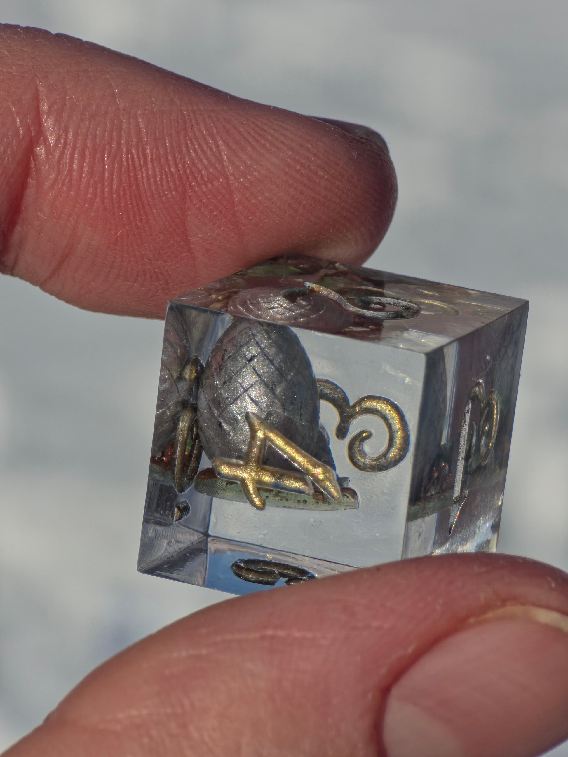 Dieses Würfelset bewahrt Fragmente seiner letzten Wiedergeburt.