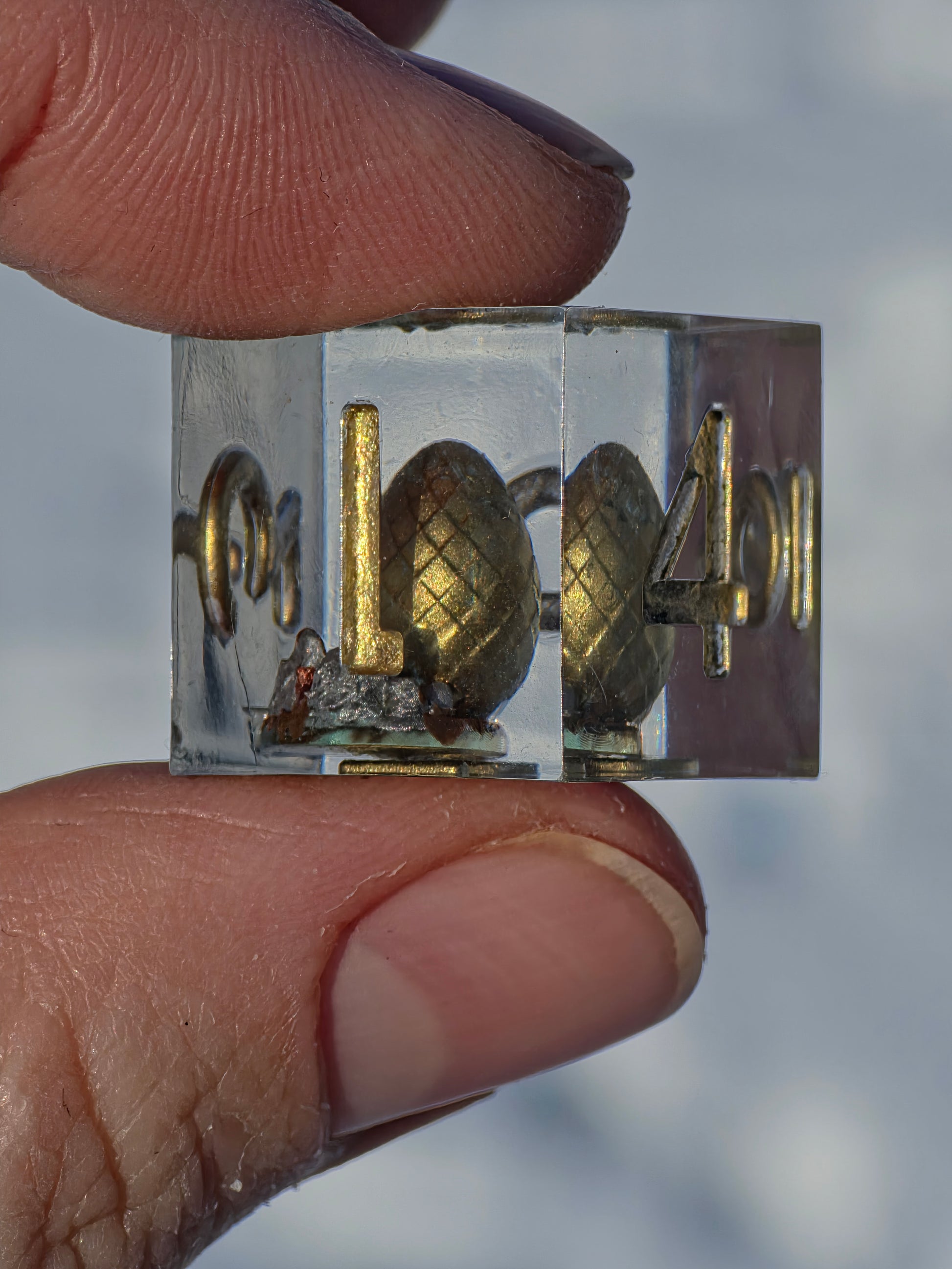 Der goldene Phönix, eingeschlossen im klaren Harz,