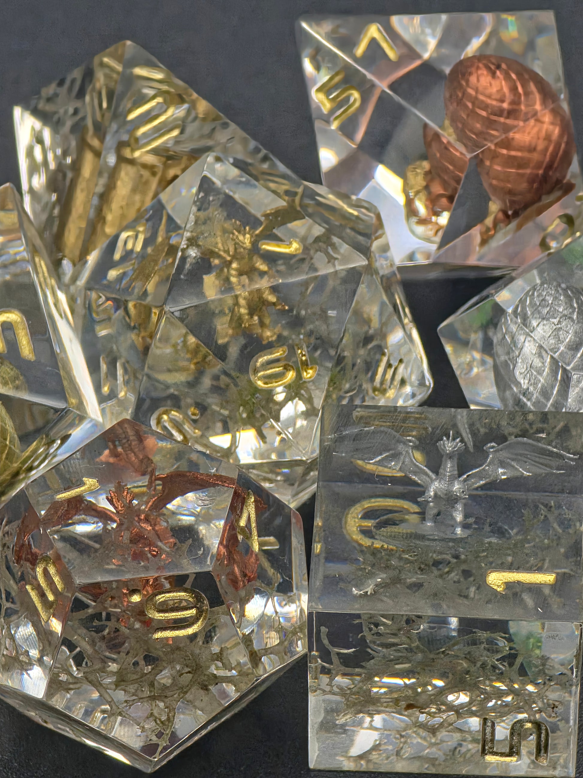 Würfelset „Hort der Uralten Drachen“ – Handgemachtes Resin Dice Set mit Drachen- & Ei-Dioramen | DnD TTRPG Würfel