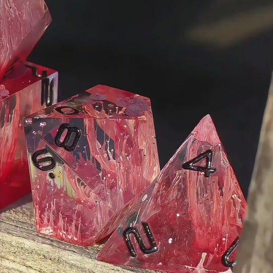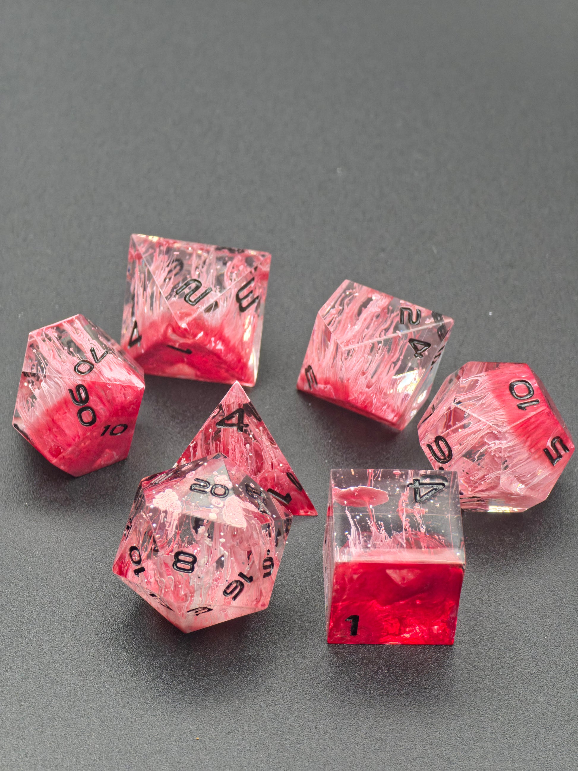 Würfelset „Sanguis Veil“ – Handgemachtes Petri Dice Set in Tiefrot mit organischem Nebeleffekt | DnD TTRPG Würfel